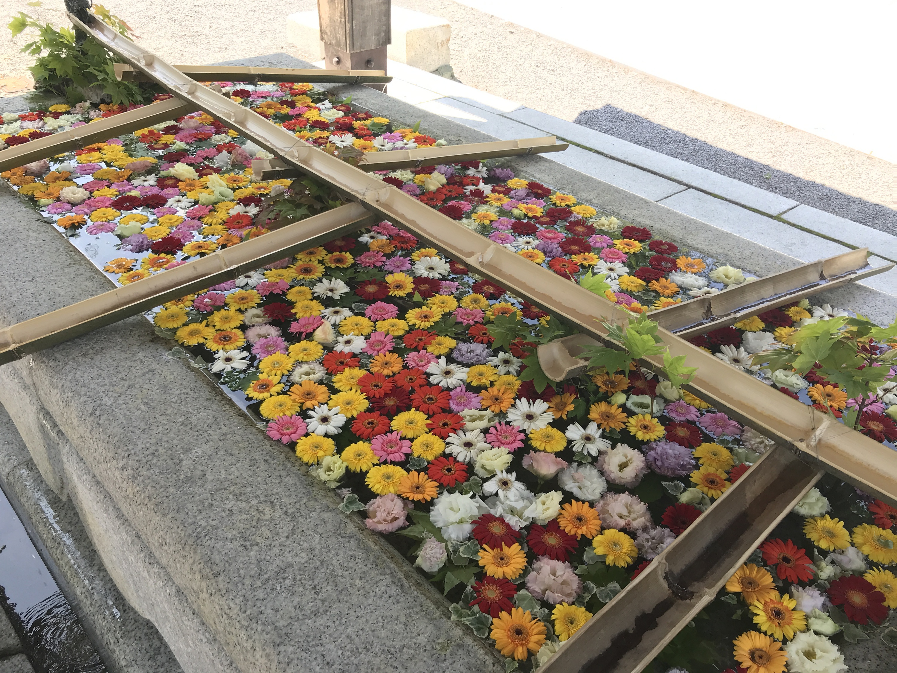 ※花手水は7月4日から8月14日まで(第一回:7月4日、第二回:7月14日、第三回:7月24日、第四回:8月4日、四回の花交換を行います)