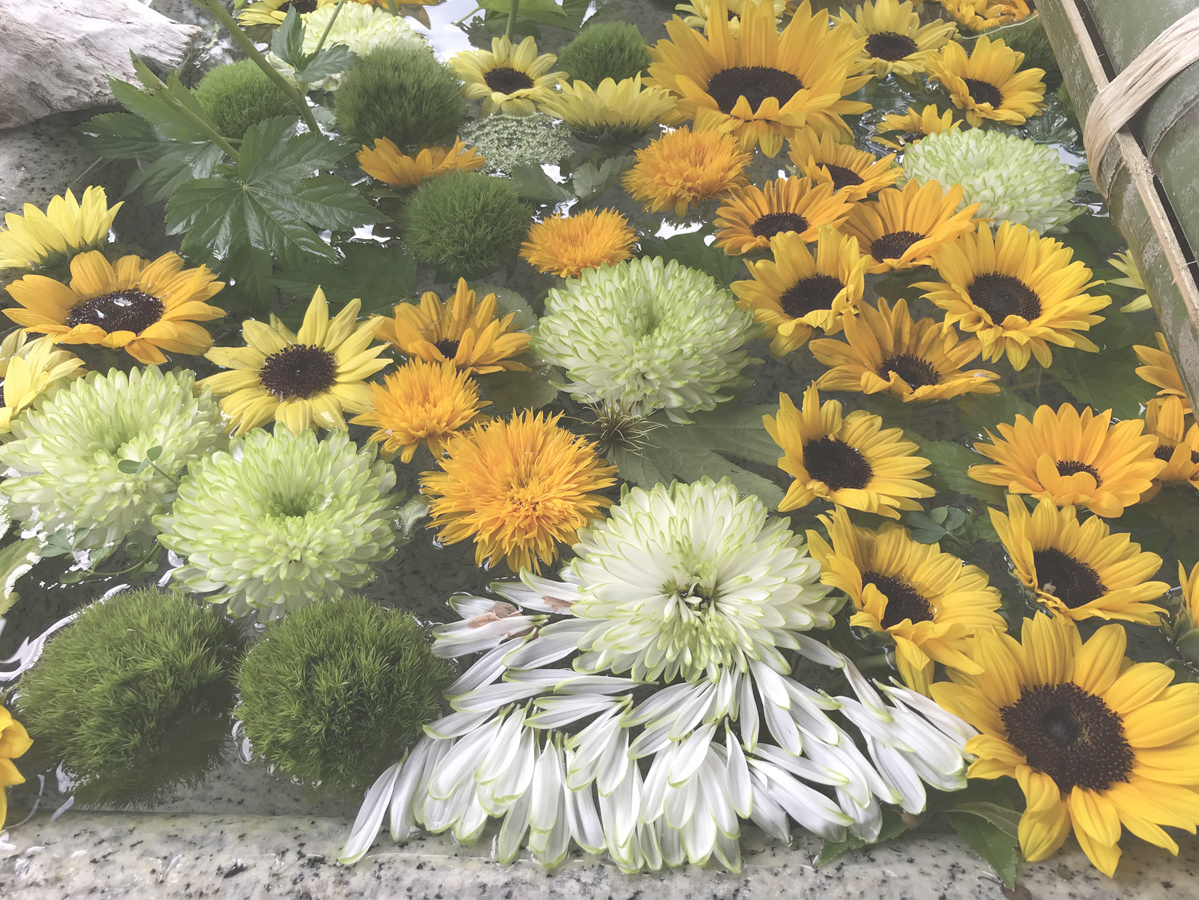 第3回花手水(2020年7月24日〜8月3日:向日葵)