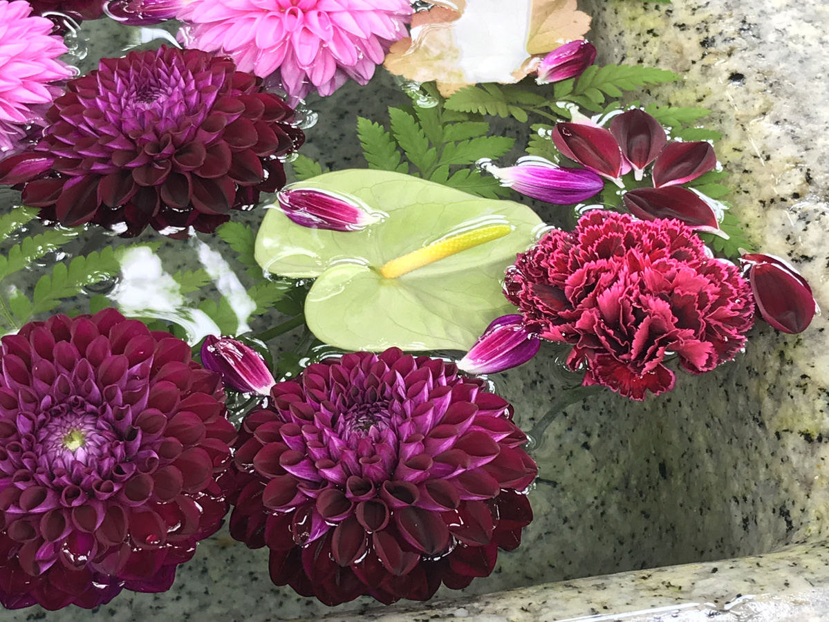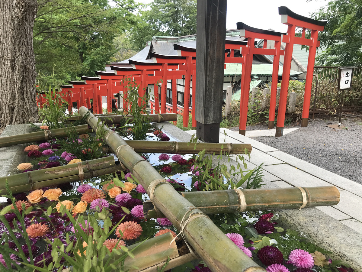 先月4日から執り行いました当神社初めの花手水。有限会社小樽フラワー様の格別の御協力を戴き10日毎に花を全面的に取り替え実施しました。参拝各位から多くのお喜びの声を賜わり誠に有難く存じます。