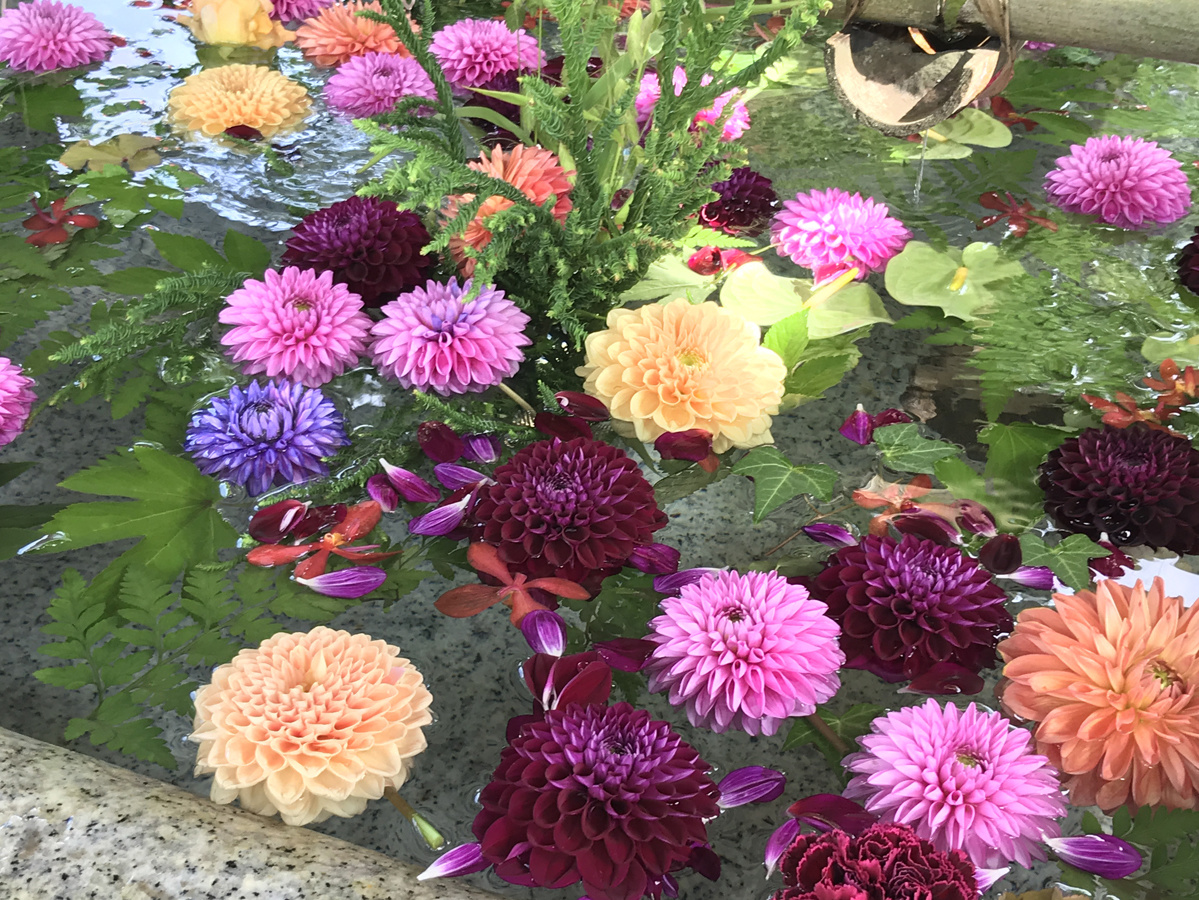 第5回花手水(2020年8月14日〜8月23日:ダリア)
