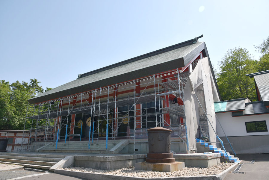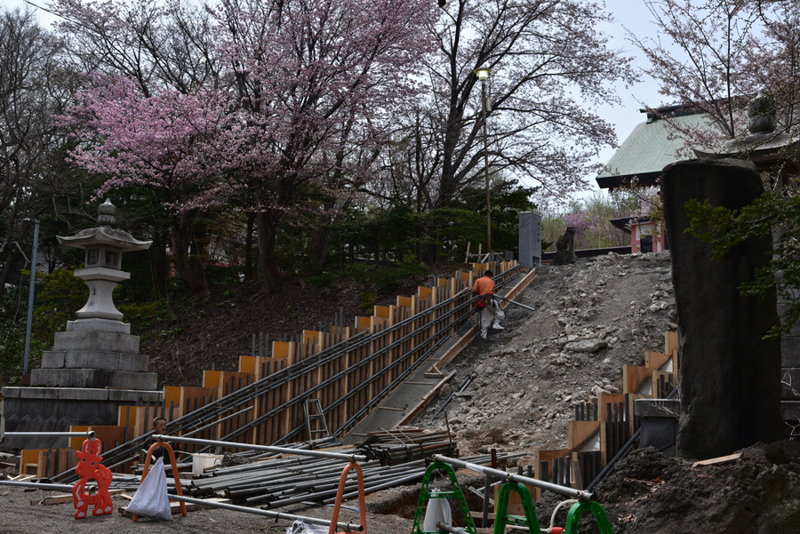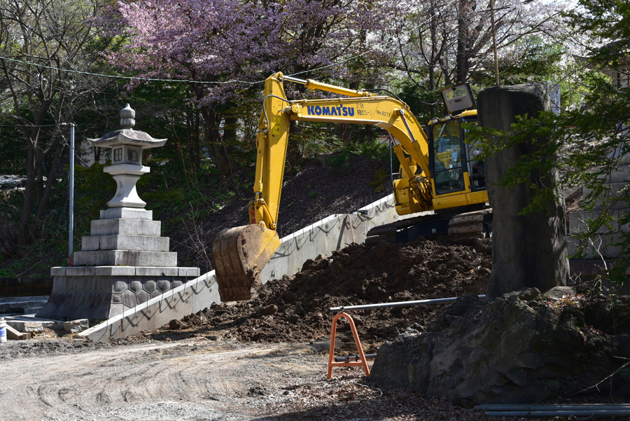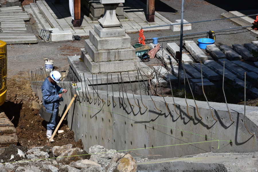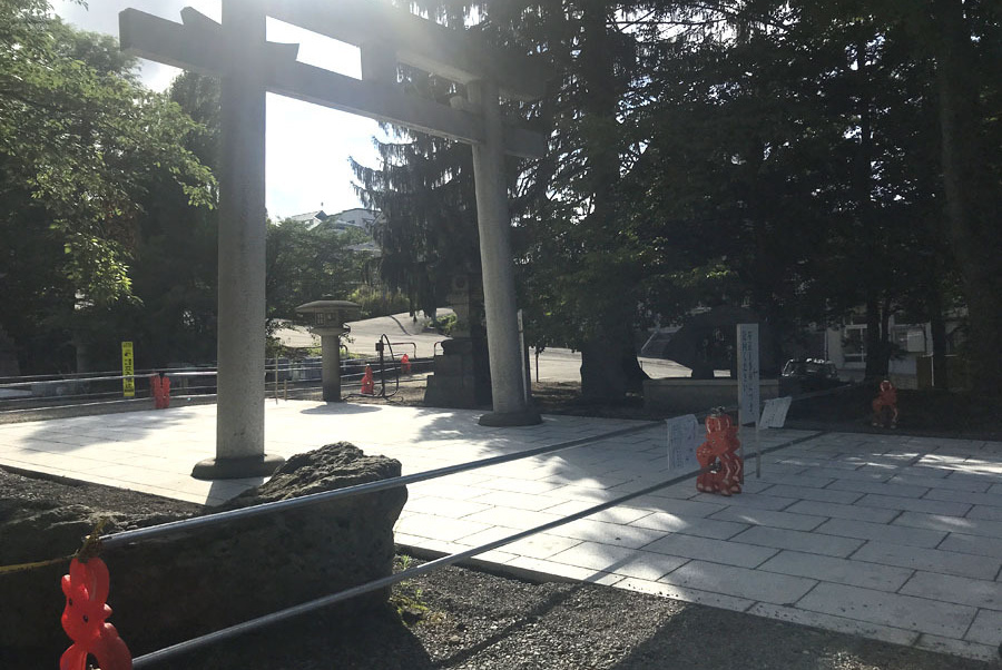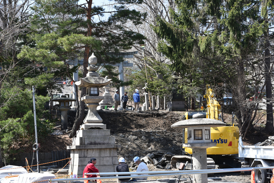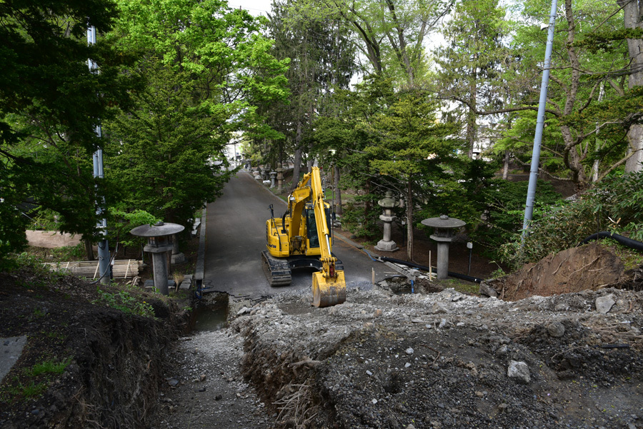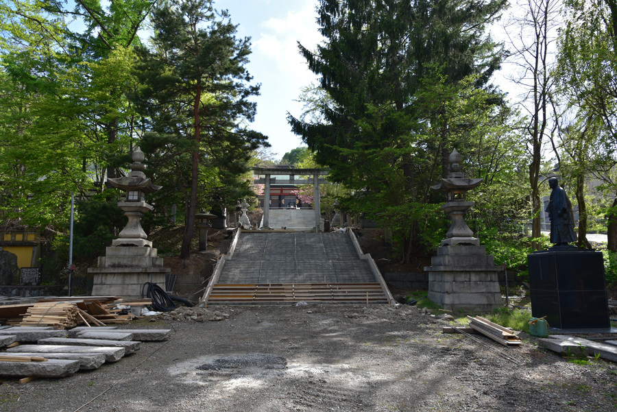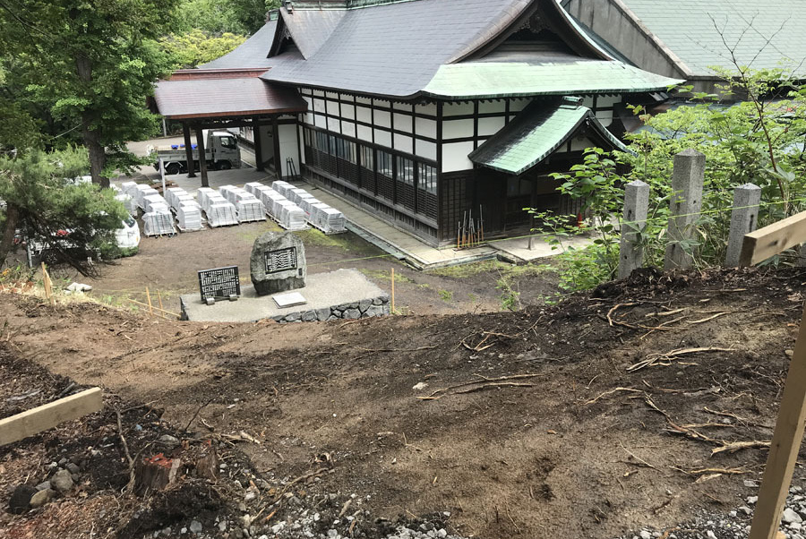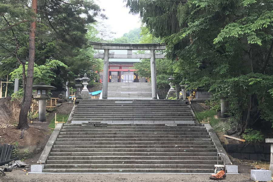 この度の改修工事では、参道三箇所の石段の基礎と積替えをすることにより勾配を緩やかにし、ご高齢の方々にも昇りやすい石段へ改修します。また冬期間も参拝しやすくするため、階段の一部をロードヒーティングします。