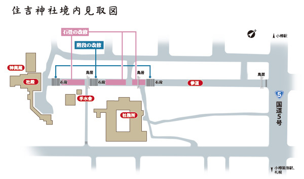 つきましては、小樽市民各位をはじめ幅広い皆様のご賛同を賜り、本趣旨をご理解いただき、住吉神社の新しい境内づくり事業の完遂に向けてお力添えを賜りたくお願いを申し上げる次第でございます。